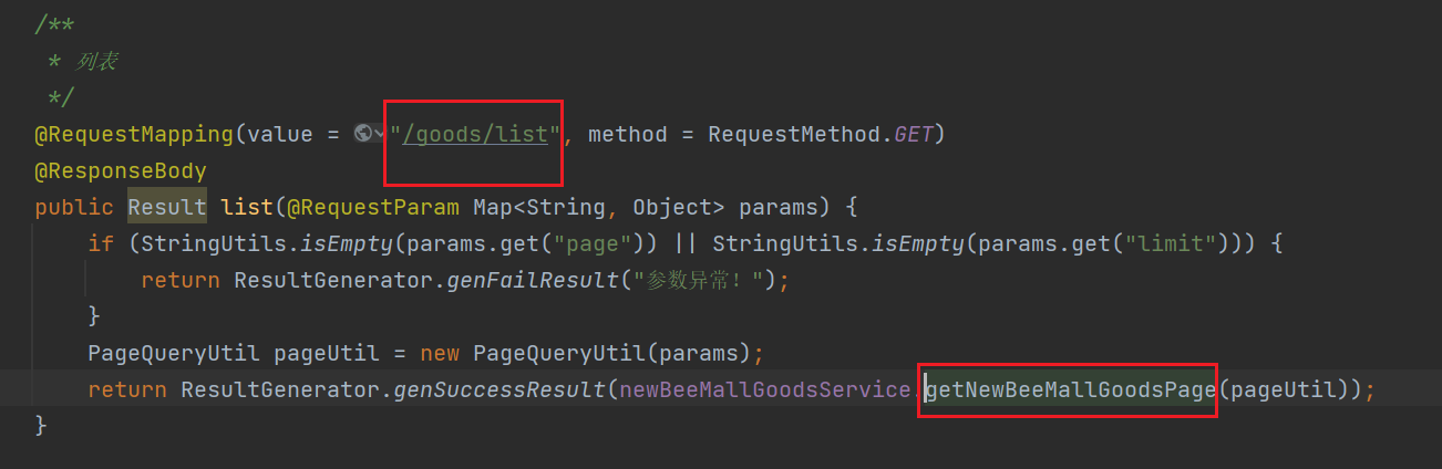 3.1.4 分析 NewBeeMallGoodsController 中list的代码