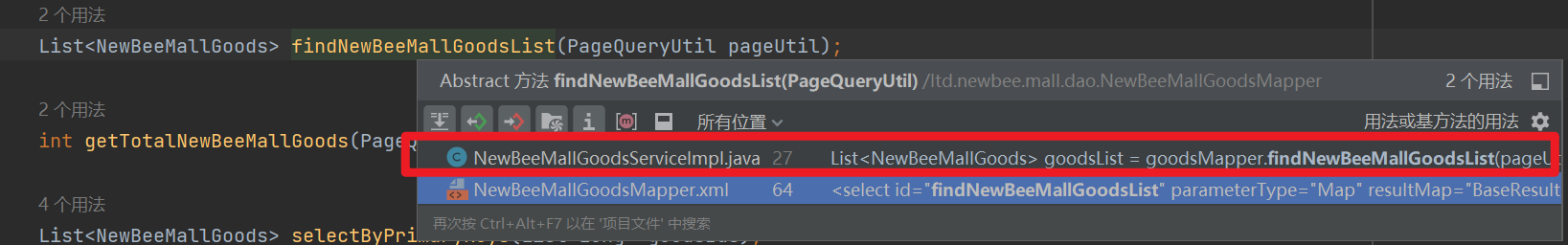 3.1.3 继续逆向追踪 ,查看谁调用了 getNewBeeMallGoodsPage 方法:
