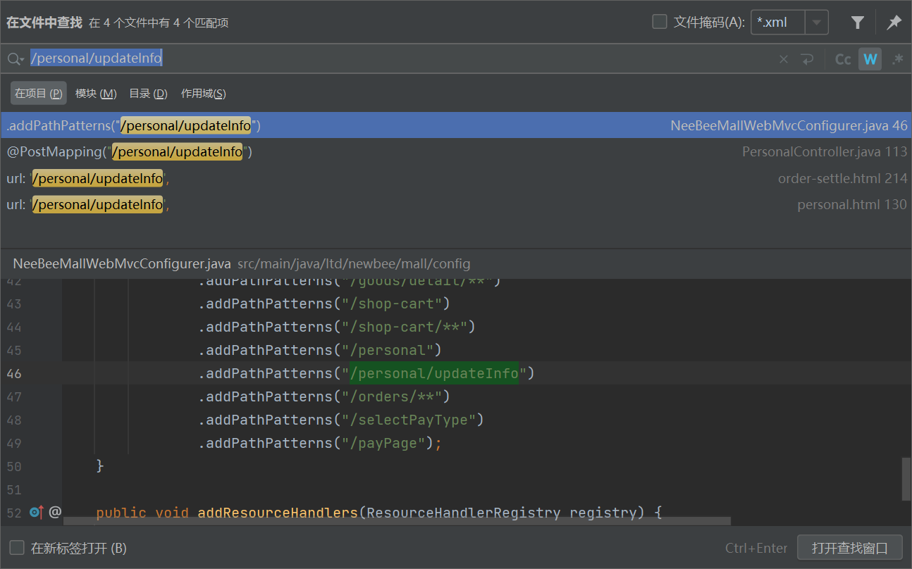 在代码中全局搜索接口 /personal/updateInfo (请求包中的路径)