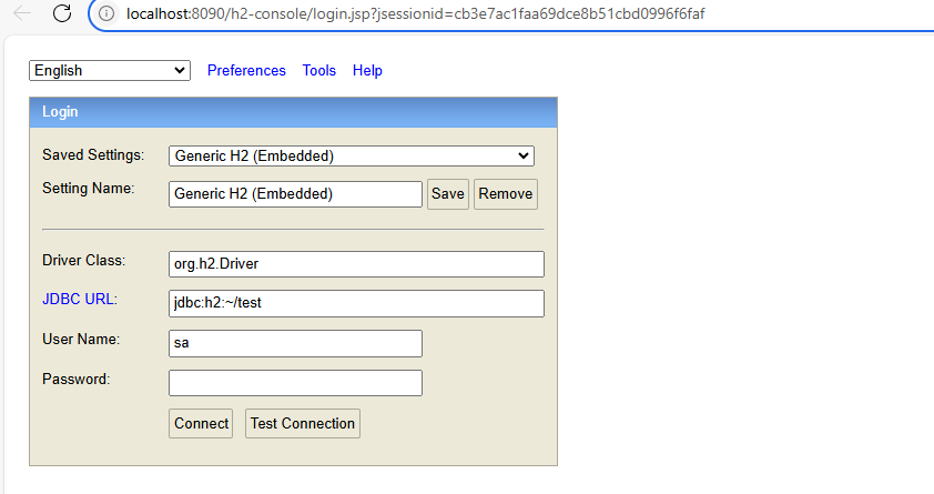 访问 http://localhost:8090/h2-console/login.jsp ,可以看到 H2 控制台