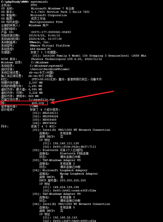 四. 内网信息收集 4.1 收集当前的登录账号: