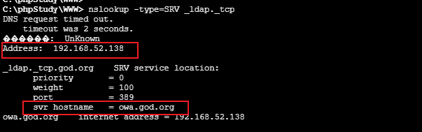4.5 获取主机的IP地址和域控的位置 1 nslookup -type =SRV _ldap ._tcp