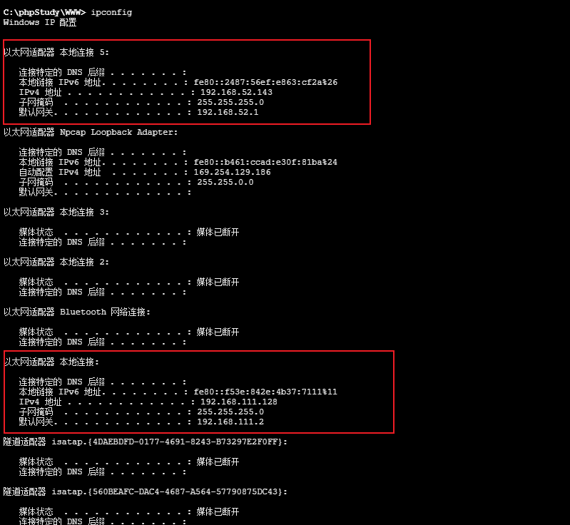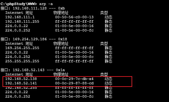 IP地址为:192.168.111.128 和 192.168.52.143